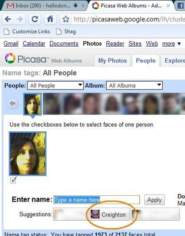 I love Google’s Picasa. The face recognition in the online version is amazing. It’s almost uncanny how it can tag faces with names. My love for Picasa takes a hit when the face/name recognition match is insulting.