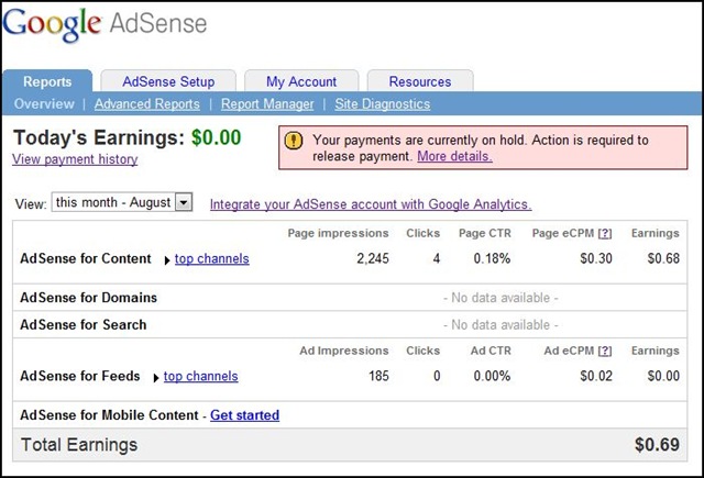 I wrote 21 posts for the month of August and Google is telling me that of all that work, I am worth 69 cents! It’s just so insulting. Now don’t get me wrong! I don’t think my writing is worth much money at all… I just think I should be over a dollar.
