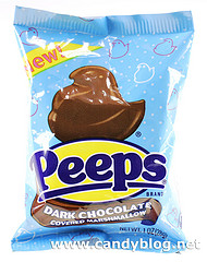 Which reminds me, have you heard about the new CHOCOLATE COVERED PEEPS? When I first heard about them I was intrigued to no end! I could just imagine the sparkly yellow sugar-covered peep drenched in chocolate… I had to experience it! Yesterday I went to ACME to buy Keilbasa and I spied the new Peeps in the Easter aisle. I grabbed one and out in the car I ripped the packaging open like a crack addict* opens up a new pipe and bit the chick’s chocoate head right off. Guess what? It’s NOT a chocolate covered Peep. It’s just a Mallo Cup. There was no sparkly yellow sugar. The marshmallow inside was just filling. And it wasn’t even white! It was yellow! Which kinda reminded me of a Cadbury Creme Egg. I was terribly disappointed. Still it’s worth experiencing for the novelty.